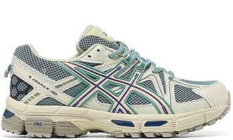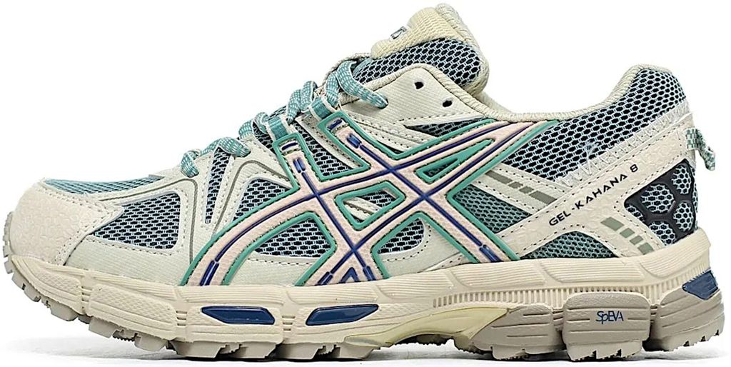 Кроссовки Asics Gel Kahana 8 в стильном сочетании хаки и голубого на белой основе. Модель оснащена фирменной системой амортизации GEL для комфортного передвижения на любых дистанциях. Прочная конструкция верха с элементами из сетки обеспечивает надежную поддержку стопы и естественную вентиляцию во время активного движения.